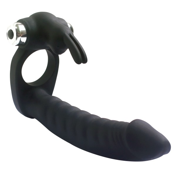 Насадка с кольцом, при помощи которого фиксируется на половом члене мужчины! Клиторальный стимулятор с милым зайкой обещает самую волнительную стимуляцию клитора, в то время как женщина ощутит полную заполненность вагины и ануса, одновременно!