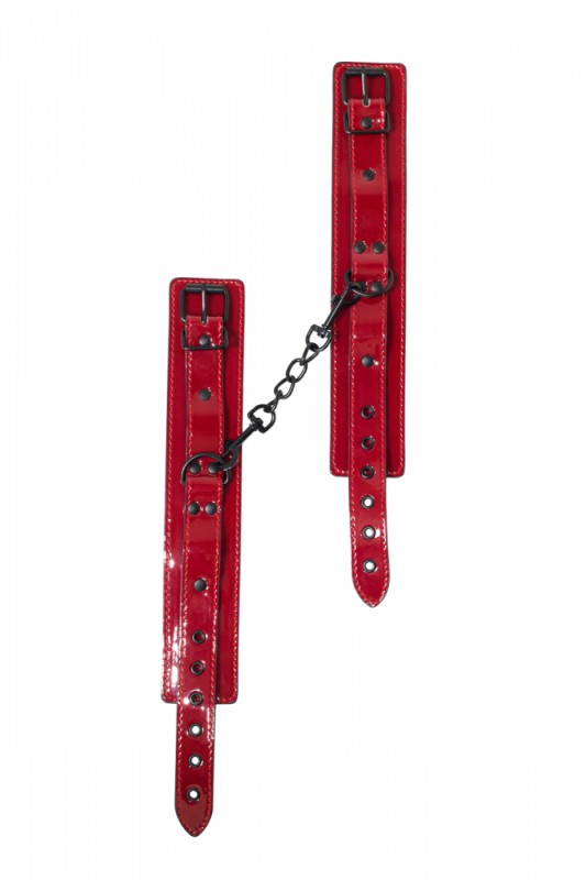 Потрясающие оковы на ноги "Party Hard" из лакированной экокожи в страстном красном цвете - яркий БДСМ аксессуар для самой провокационной сессии!