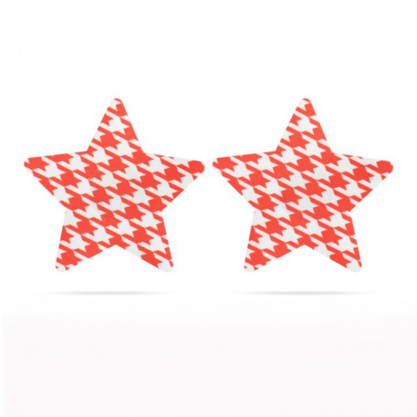 Стикини в виде звезд с клетчатым принтом черно-белого и черно-красного цвета. Фик­си­руются на соске при помощи клейкого слоя, совершенно без­опас­ного для кожи. Стикини много­ра­зо­вые: после исполь­зо­ва­ния промыть и при­кле­ить защит­ную пле­ночку