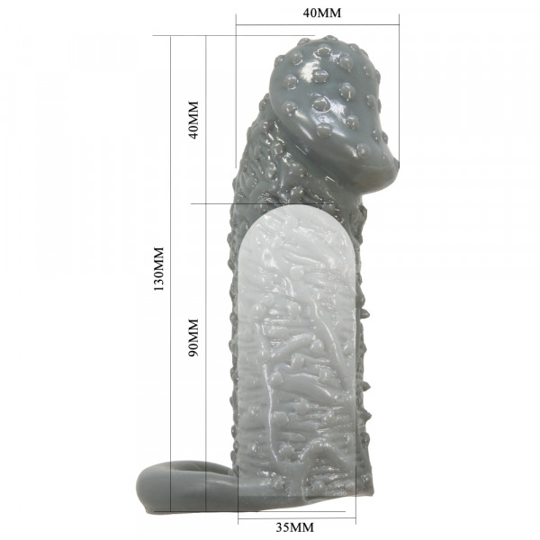 Насадка увеличивает половой член на 4см, что позволит удивить свою вторую половинку! Рельеф ствола с объемными венами и пупырышками не оставит без внимания ни один миллиметр лона женщины, а кольцо для мошонки подарит мужчине целый спетр новых ощущений и при этом будет надежно удерживать насадку